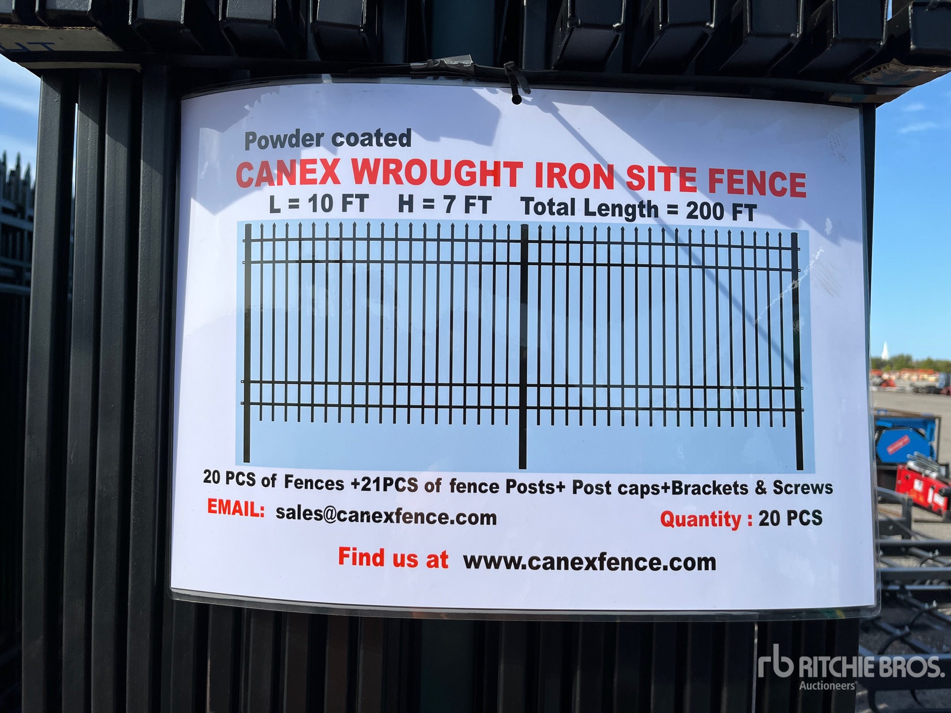Canex Qty of (20) Power Coated 7ft x 10ft Wrought Iron سياج الموقع (Unused)