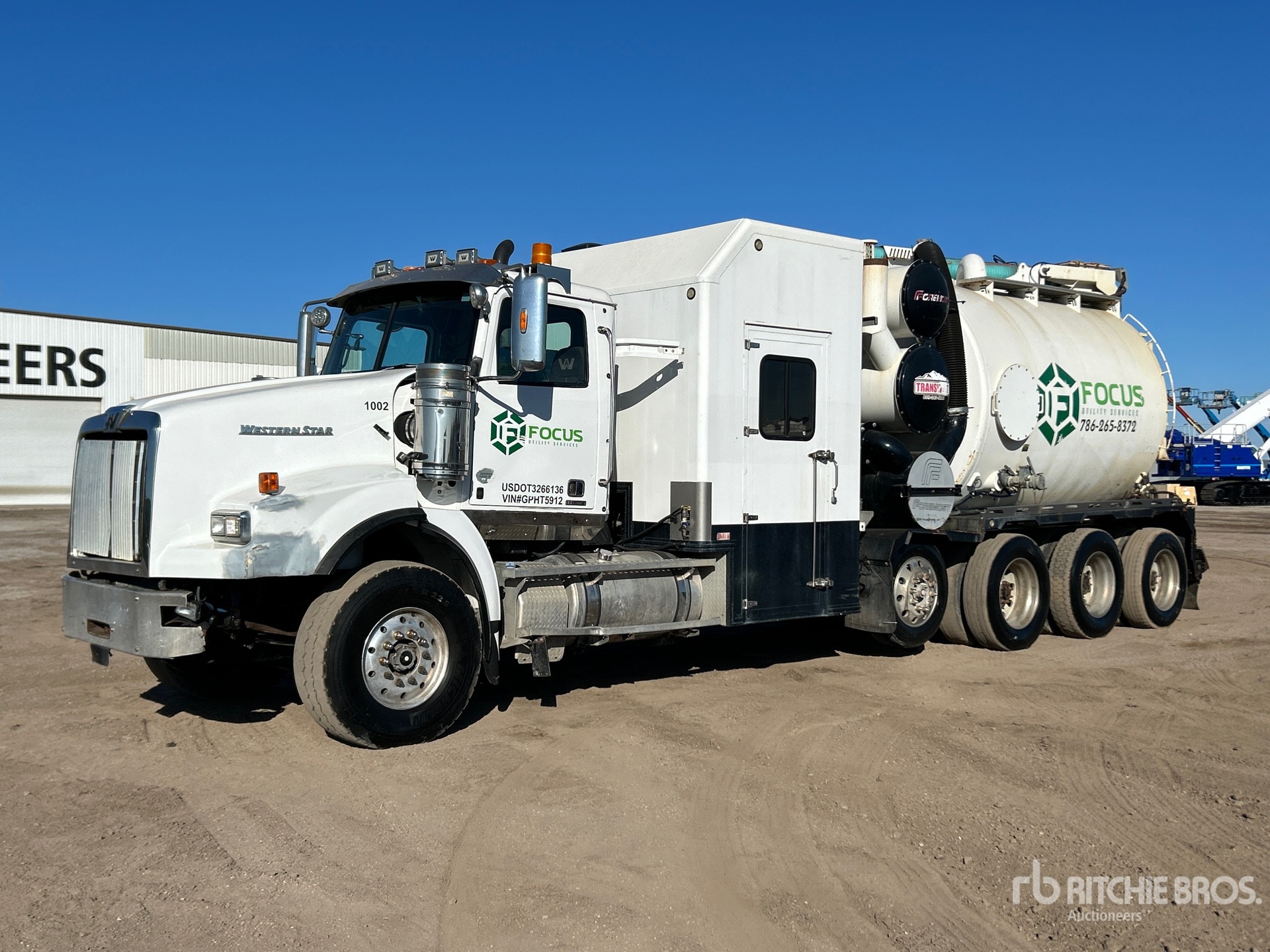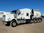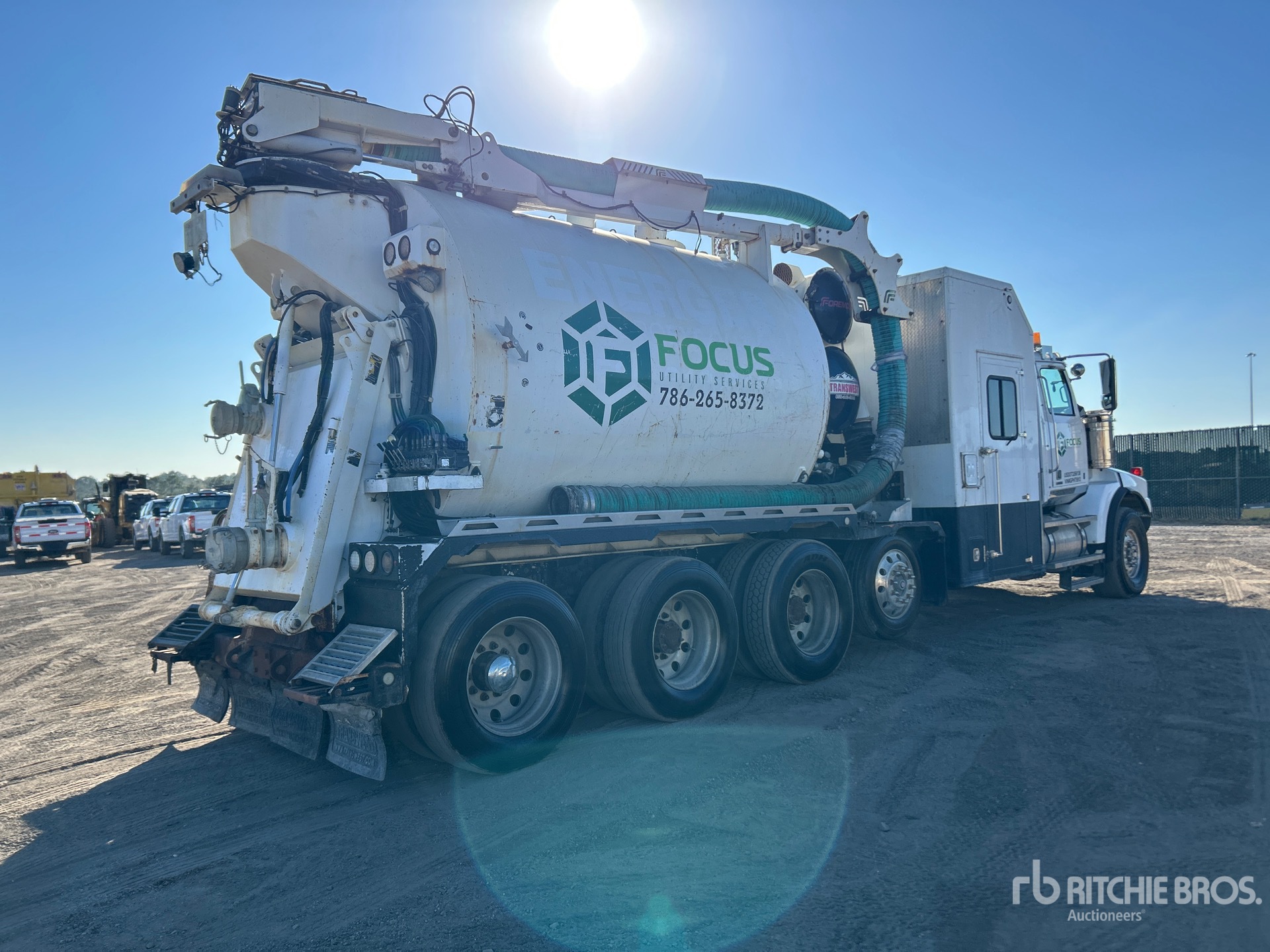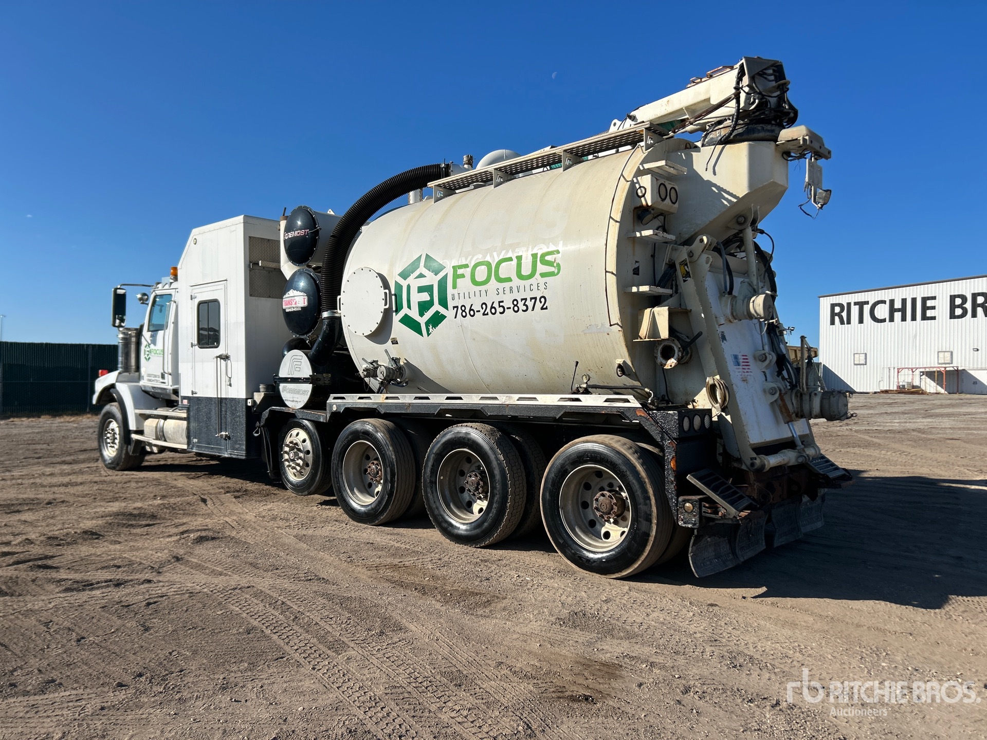 Detroit DD15 14.8 L 505 hp Engine, 10869 Engine hrs, Engine Brake, Eaton Fuller RTLO-16918B 18-Speed Manual Transmission, 20000 lb Front Axle, 82200 lb Rears, Meritor RZ-69-166 Drive Axles, 4.56:1 Axle Ratio, 98000 lb GVWR, Aluminum Wheels, 425/65R22.5 Front Tires, 11R24.5 Rear Tires, Dual Steering Boxes, Double Frame, Airliner Air Ride Suspension, 308 in Wheelbase, Steel Debris Tank, Hydraulic Lift Tailgate, Hydraulic Tailgate Locks, 14 ft Telescopic Boom, 8 in Suction Hose, Cat Hydraulic Driven Pump, Robuschi RBDV-125 Blower, Dynablast 700000 BTU Boiler w/ 22 hrs, Cordless Remote Control