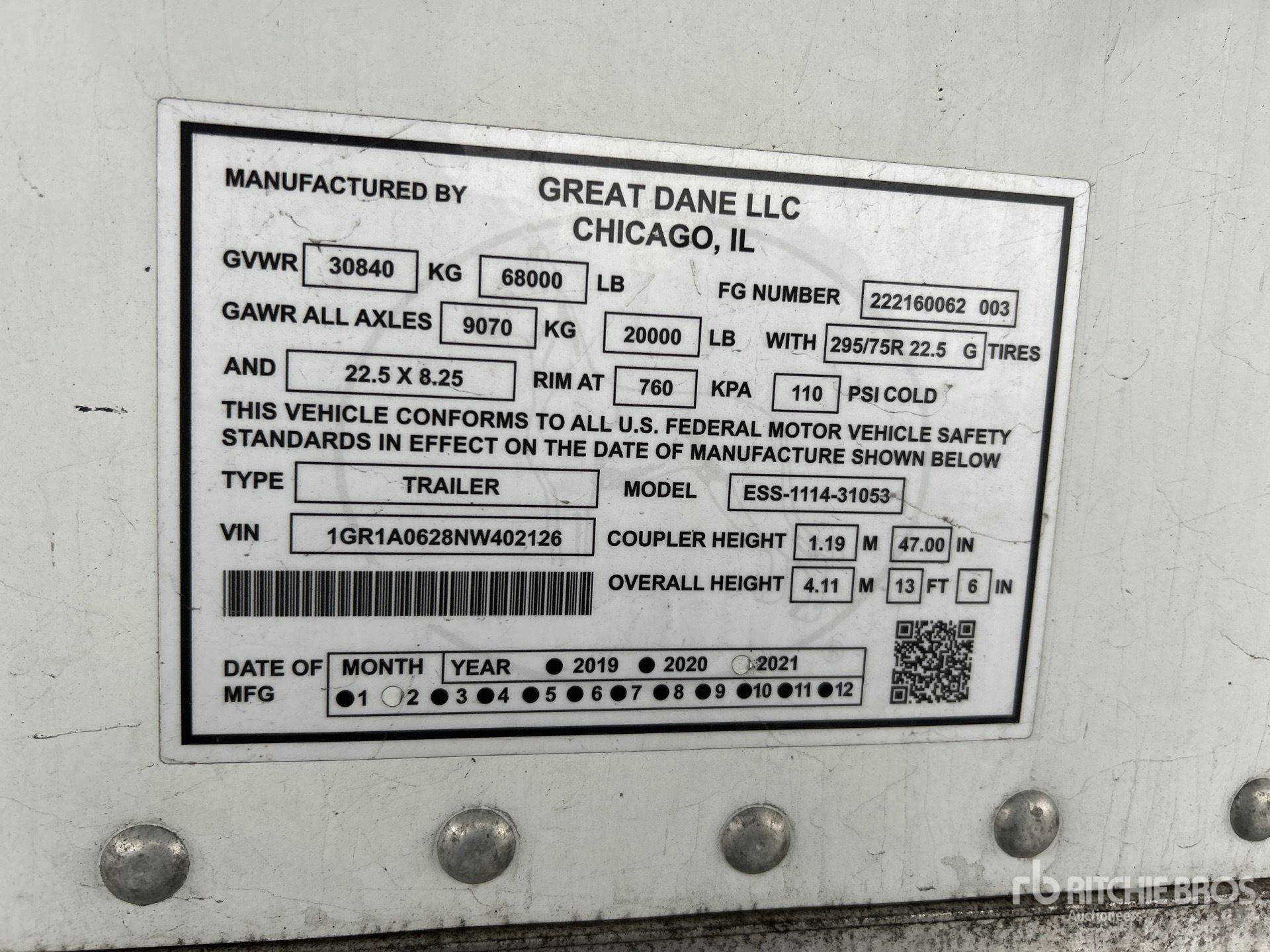Carrier Refrigeration Unit, Aluminum Floor, Swing Door, 295/75R22.5 Tires 68000 lb GVWR