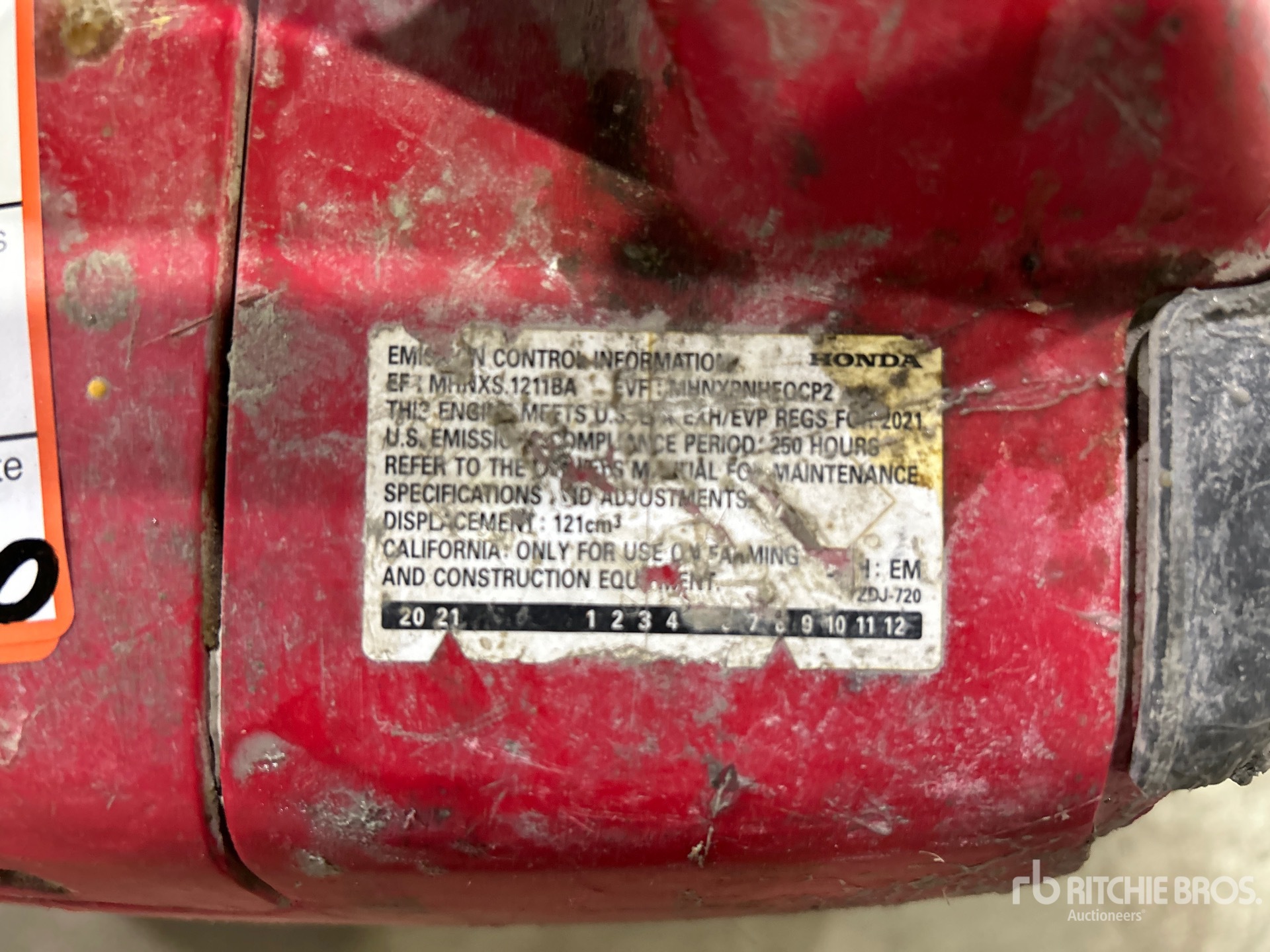 2021 US EPA Label, Honda 1 Cylinder Gasoline Engine, 120 V Rated Voltage
