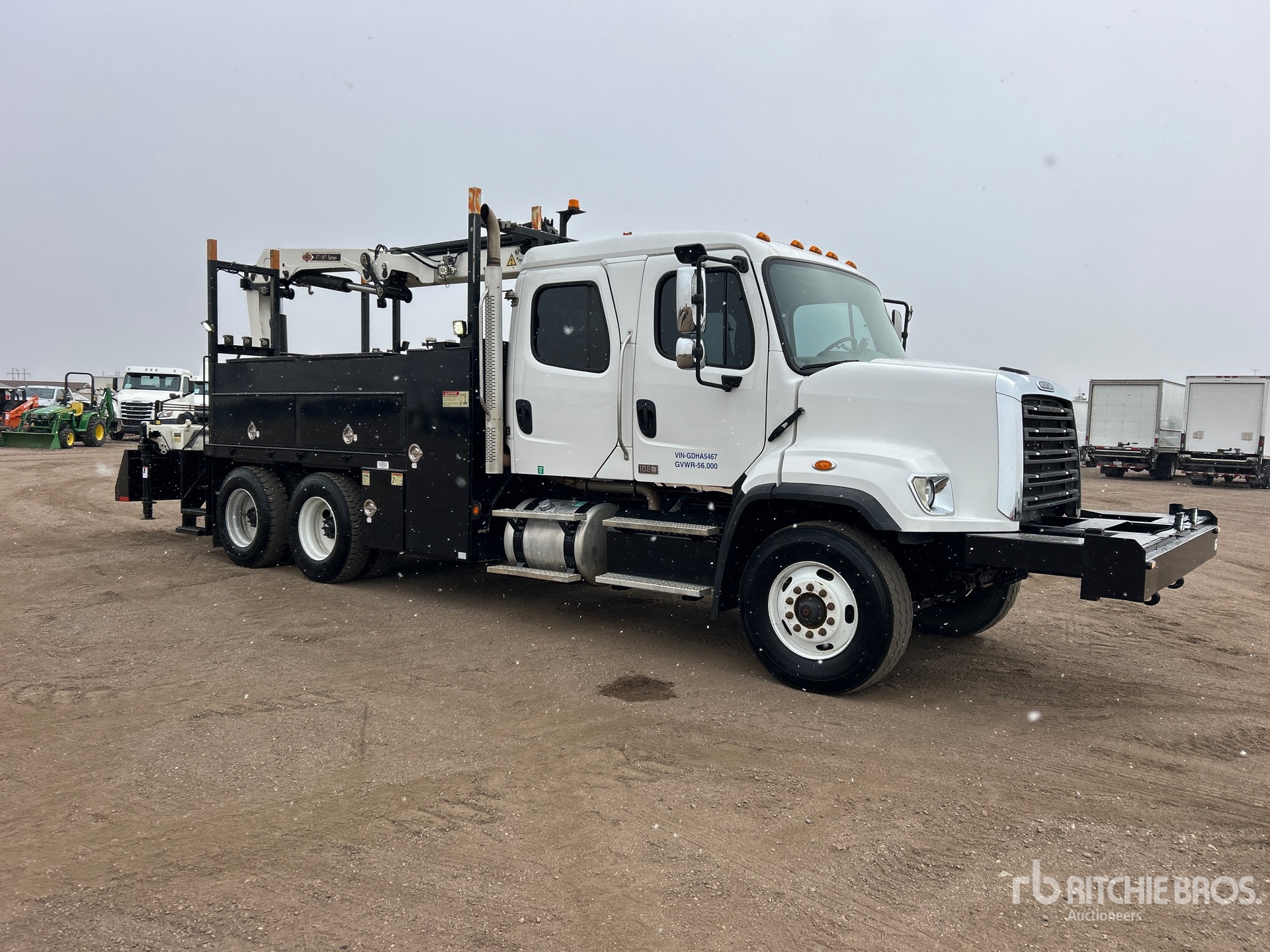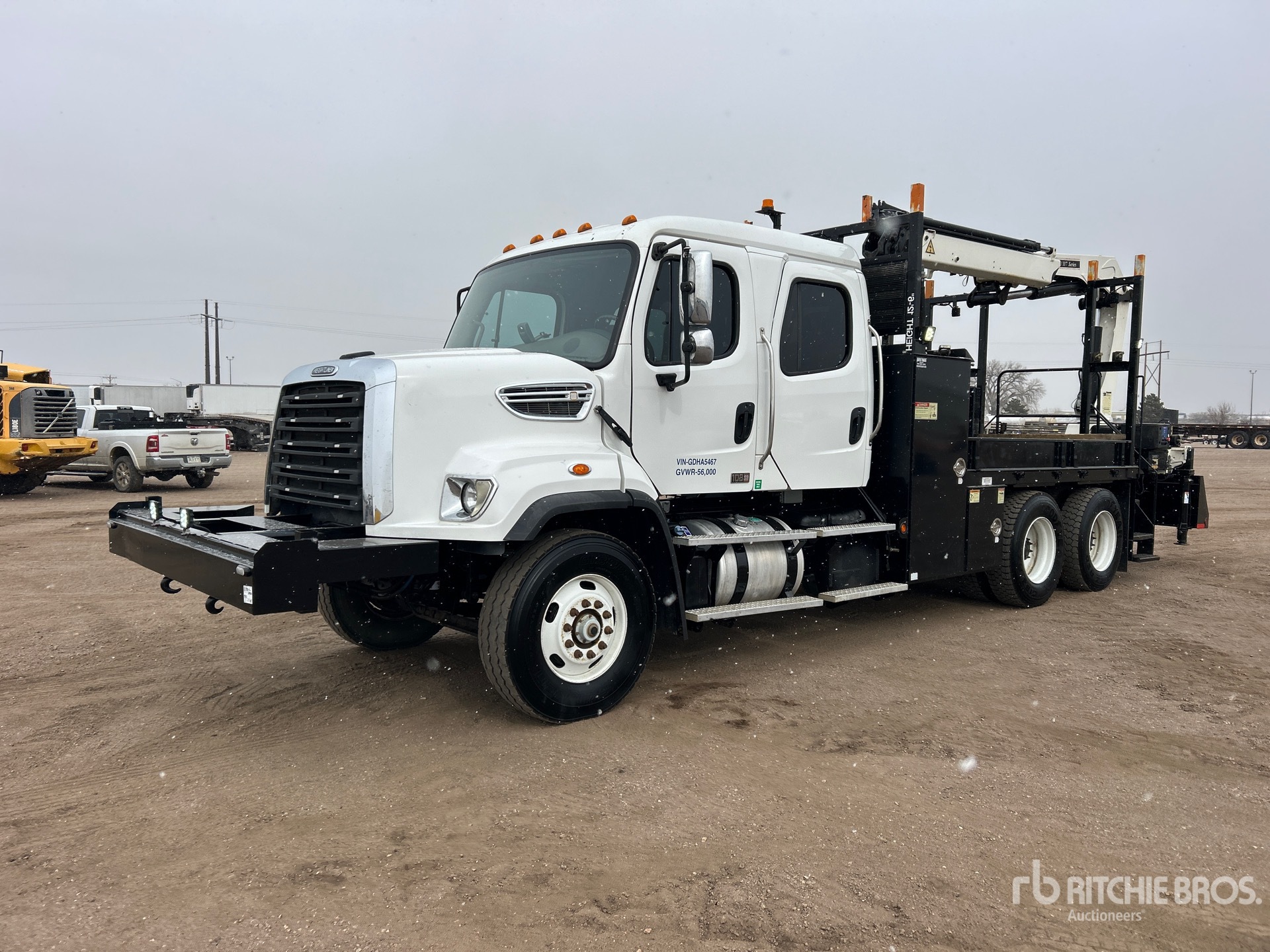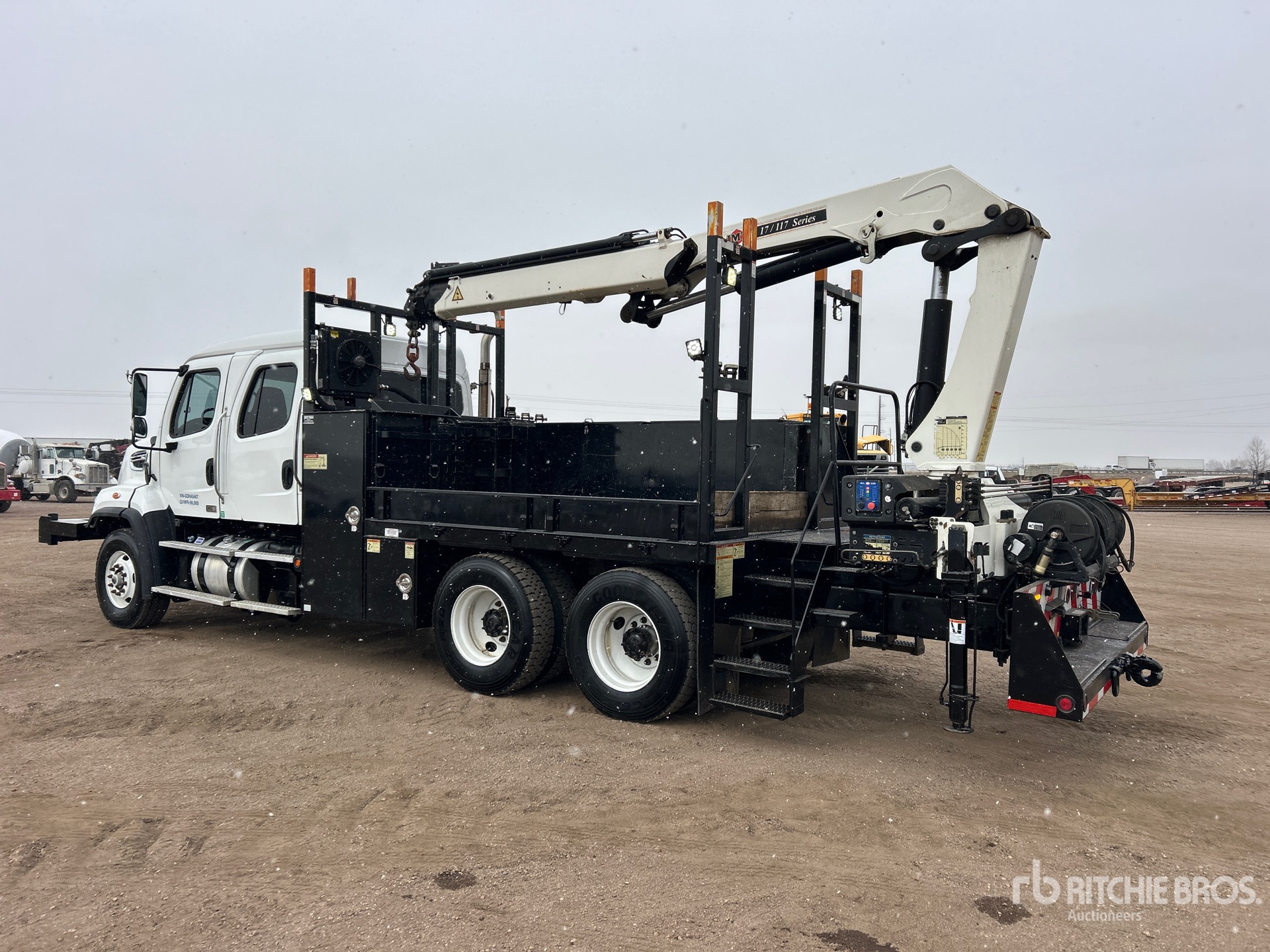 Cummins ISL9 6 Cylinder 8.9 L Diesel 345 hp Engine, 2015 US EPA Label, Requires Diesel Exhaust Fluid, 7232 Engine hrs, Engine Brake, Eaton Fuller FRO-11210C 10-Speed Manual Transmission, 16000 lb Front Axle, 40000 lb Rears, Detroit DA-RT-40.0-4 Drive Axles, 4.78:1 Axle Ratio, 56000 lb GVWR, 315/80R22.5 Front Tires, 11R22.5 Rear Tires, Air Ride Suspension, 226 in Wheelbase, PTO, 6 ft - 30 ft 4 Section Boom, Out and Down Outriggers, Cordless Remote Control, IMT 17/117DL K3 13825 lb 4 Section Hydraulic Crane, 15 ft x 96 in Bed, Pintle Hitch