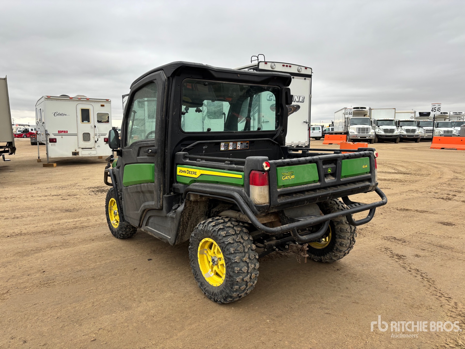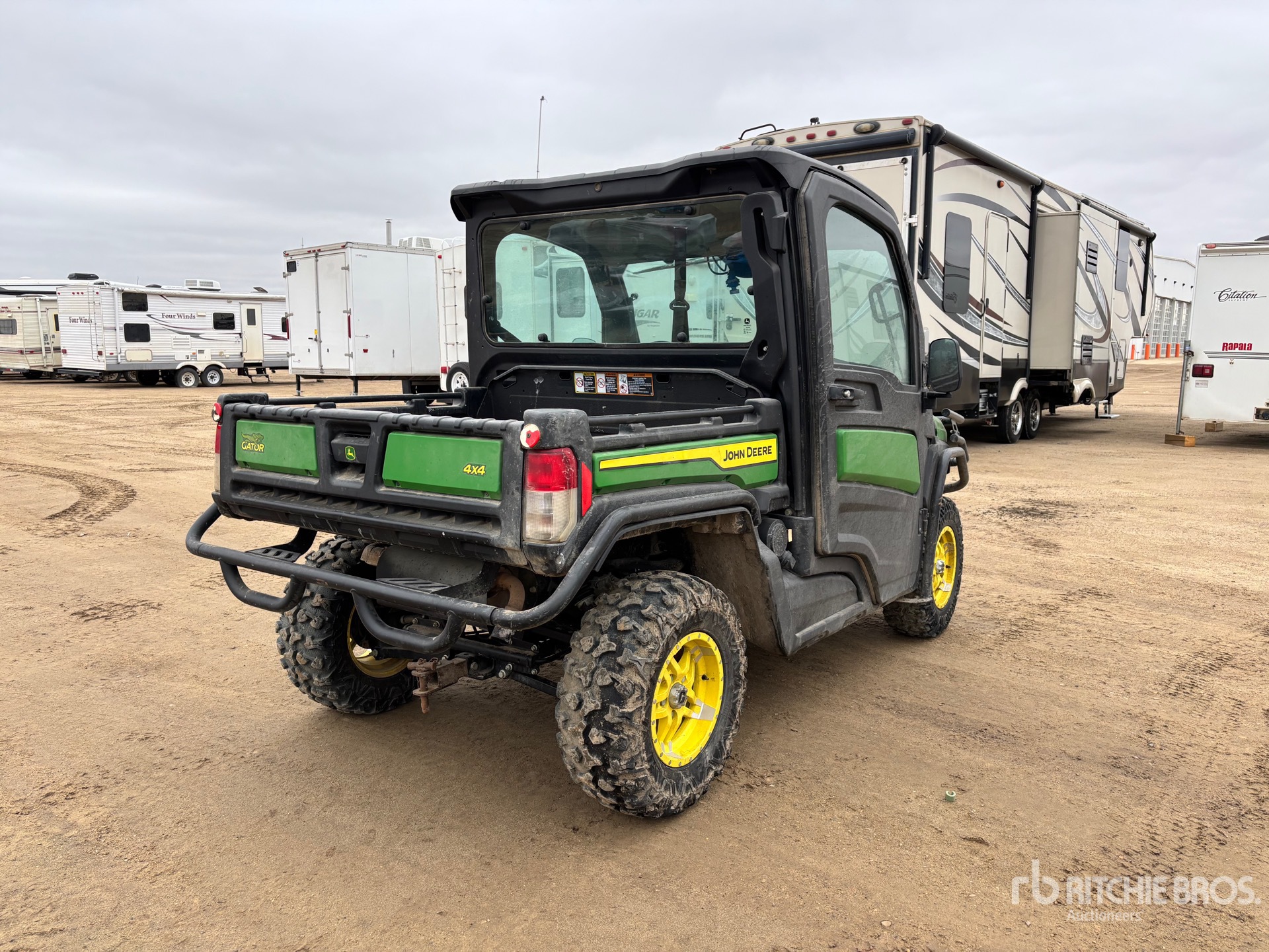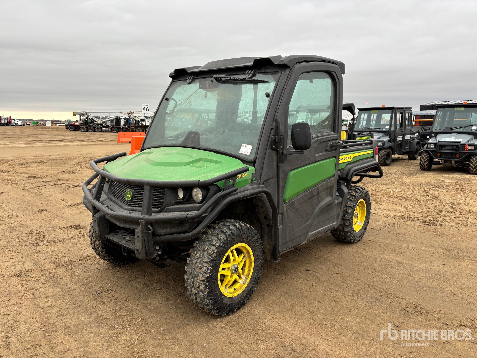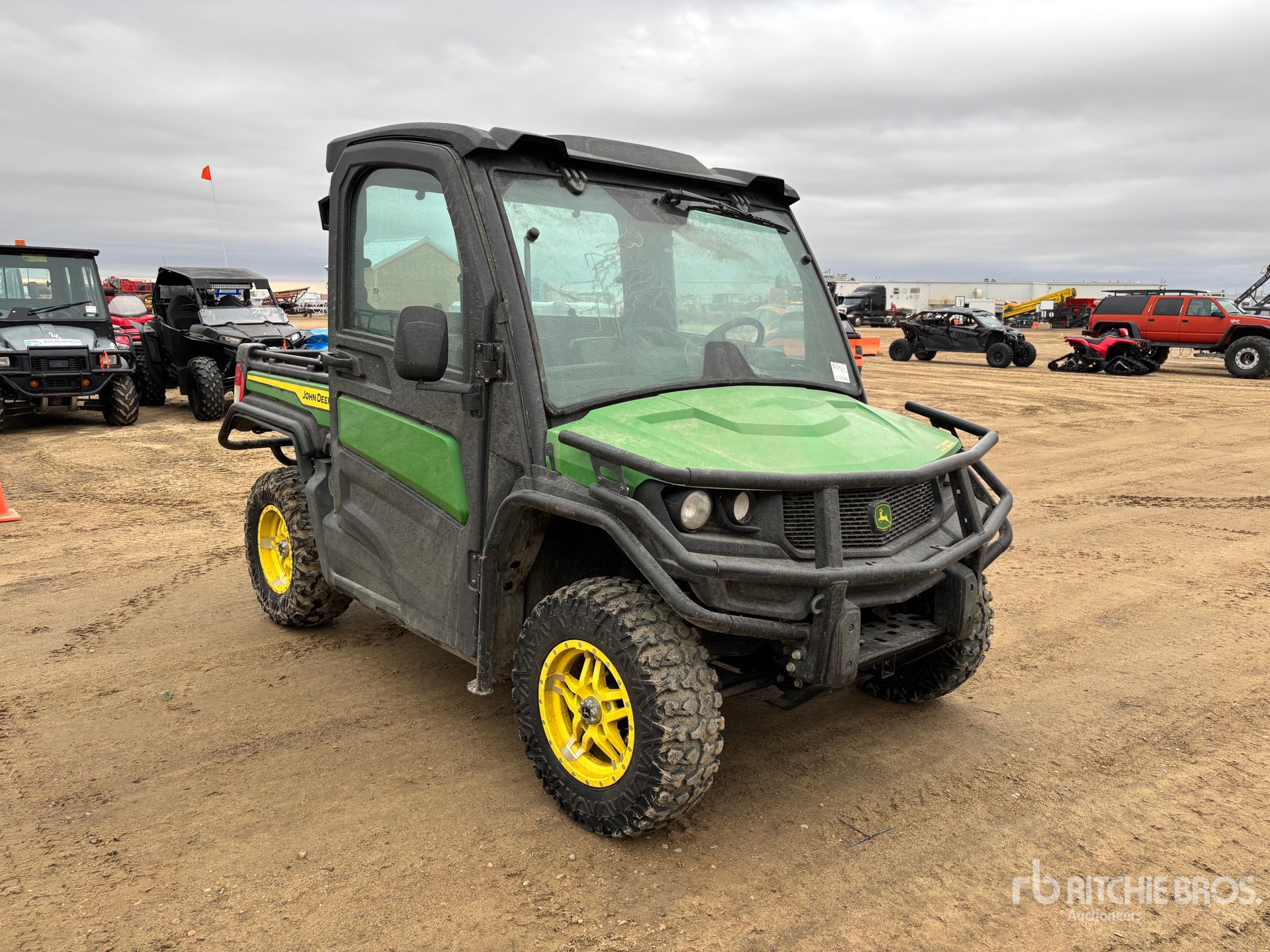 Enclosed Cab, 3 Passenger, Windshield, Rear Screen, Brush Guard, Hitch Receiver, Electric Dump Bed, John Deere 3 Cylinder Gasoline Engine