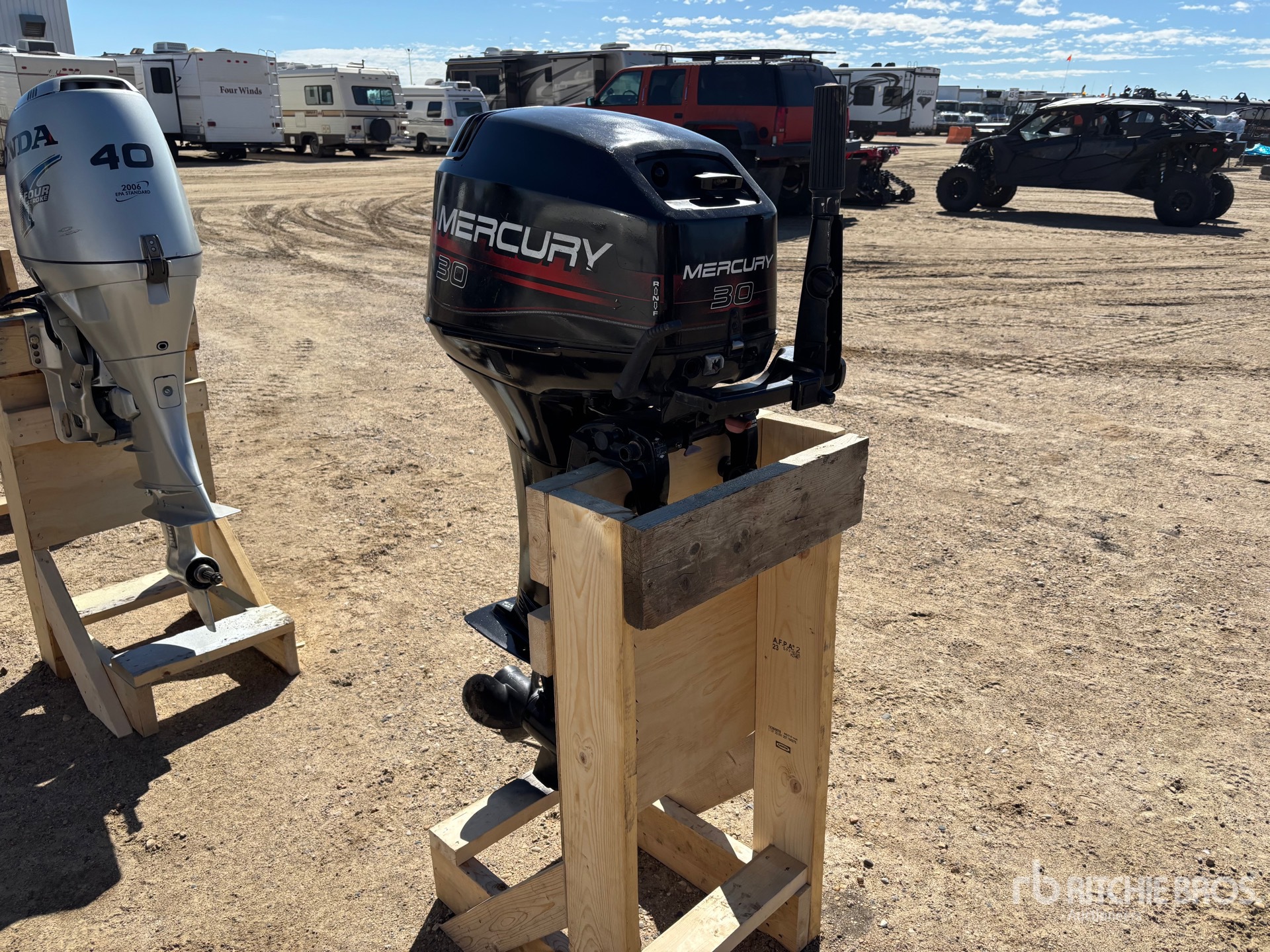 Mercury Gasoline Engine, 4 Stroke, Long Leg, Has reverse, Controlled by Helm. -NO Ignition