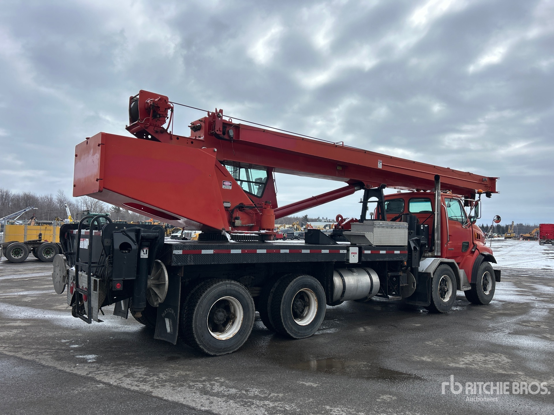 Cat C12 6 Cylinder 11.9 L Diesel 380 hp Engine, 2001 US EPA Label, 2841 Engine hrs, Engine Brake, Eaton Fuller 15-Speed Transmission, Differential Lock, 20000 lb Front Axle, 46000 lb Rears, 425/65R22.5 Front Tires, 11R22.5 Rear Tires, Dual Steering Boxes, Double Frame, Rubber over Walking Beam Suspension, 276 in Wheelbase, PTO, Hydraulic System, 31 ft - 127 ft 5 Section Boom, 31 ft - Jib, 171 lb Ovrehaul Ball 11000 lb Capacity McKissick 640 lb 2 Sheave 55000 lb Capacity Hook Block w/ 0.62 in Wire Rope,, PAT Load Moment Indicator, Out and Down Outriggers, 5th Outrigger, National 1800 88000 lb 5 Section Hydraulic Crane, 17 ft x 93 in Bed, Pintle Hitch