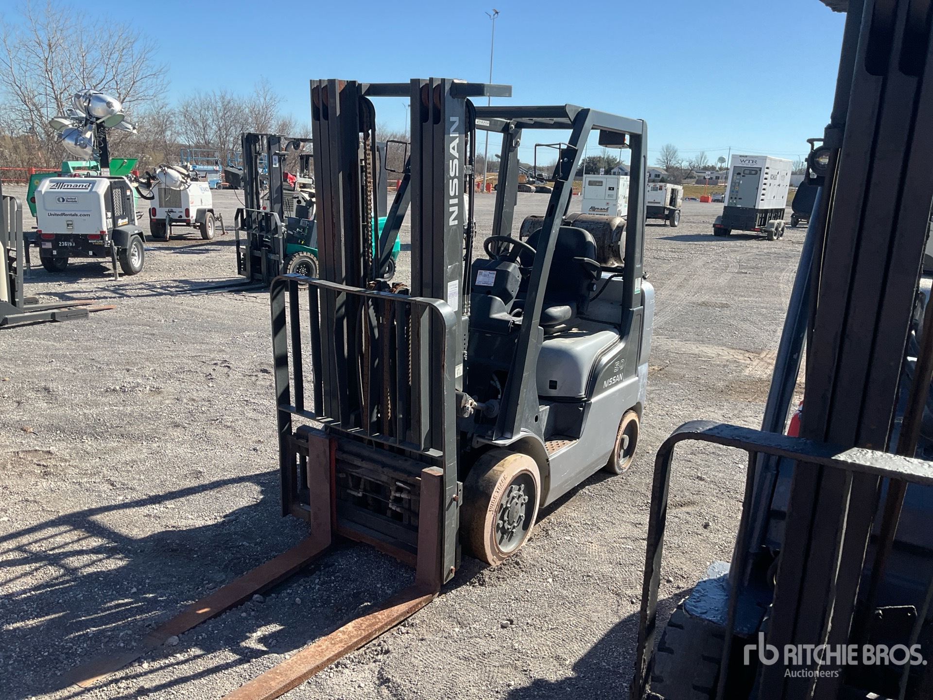 3 Stage Mast, 187 in Max Lift Height, 82 in Lowered Mast Height, Side Shift, Nissan 4 Cylinder LPG Engine