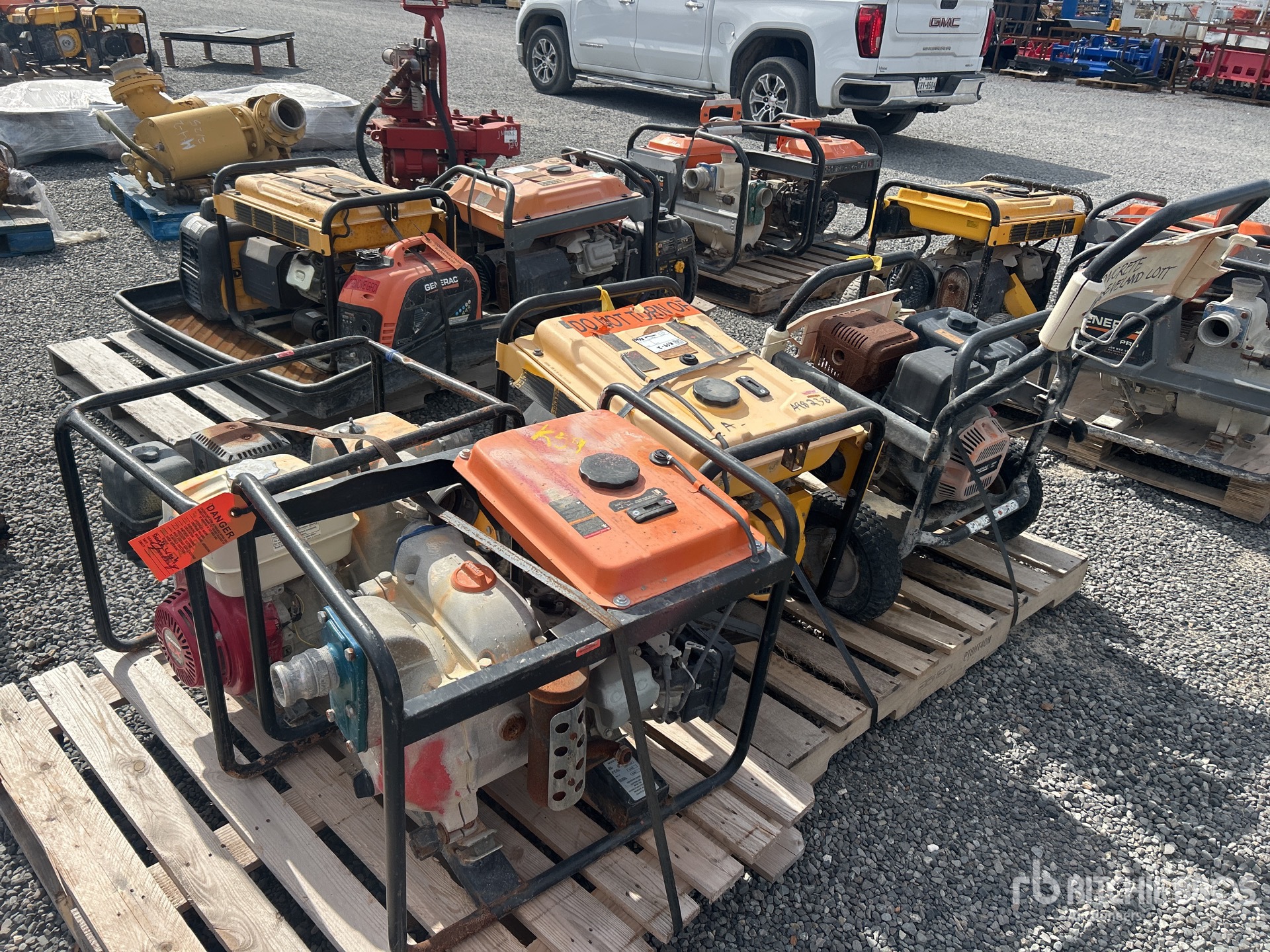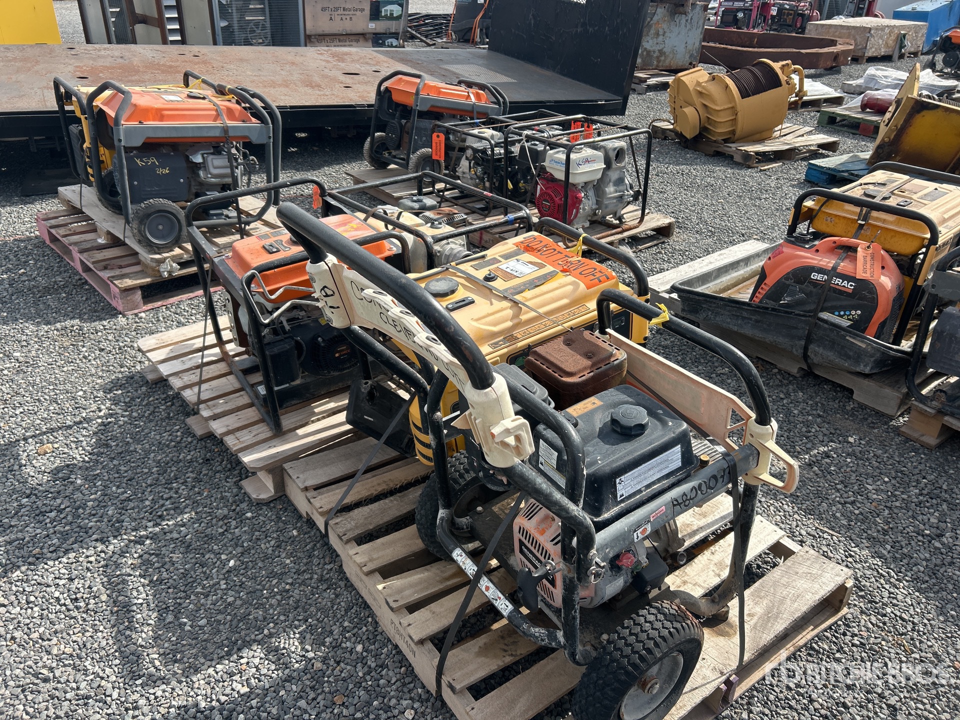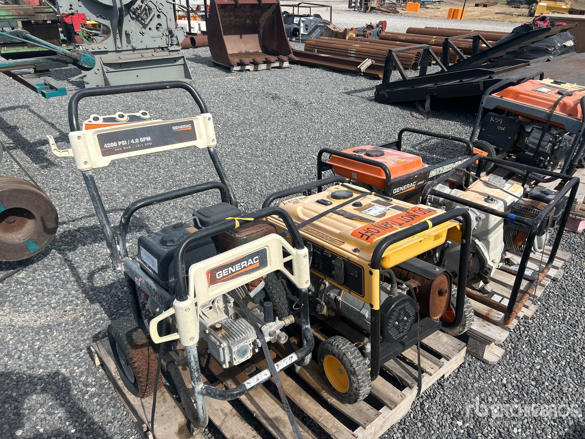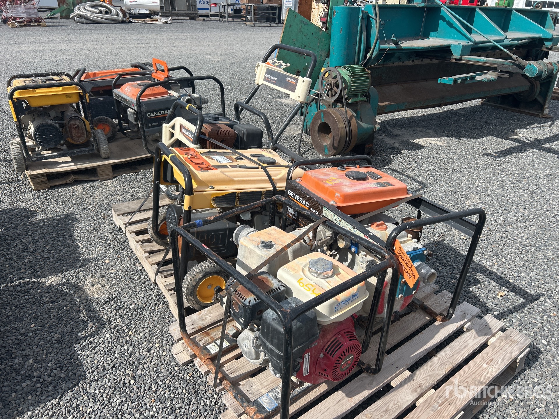(1) Generator, (2) Water Pumps, (1) Pressure Washer