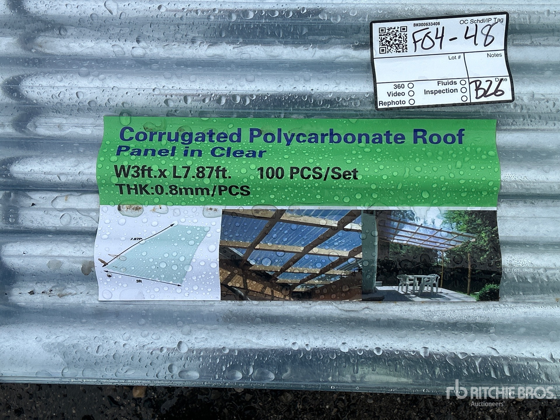 Quantity of (100) 7.87 ft X 3 ft Clear Polycarbonate Roof Panel (Unused)