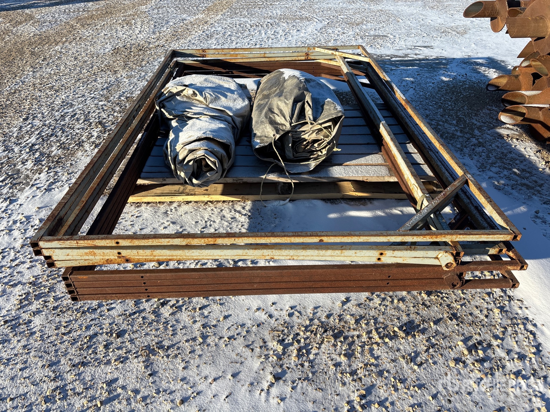 القياسات مُقدمة بشكل تقريبي فقط. قد تختلف الأبعاد الفعلية للحمولة بناءً على ارتفاع الشاحنة/المقطورة وتكوين/وضع الآلة المُحمَّلة. تقع على عاتق المشتري مسؤولية قياس جميع الأحمال قبل مغادرة موقع المزاد الخاص بنا لضمان أن الحمولة آمنة للنقل. يجب أن يتحقق المشتري من جميع القياسات. لا تعتمد على هذه القياسات لأغراض النقل.