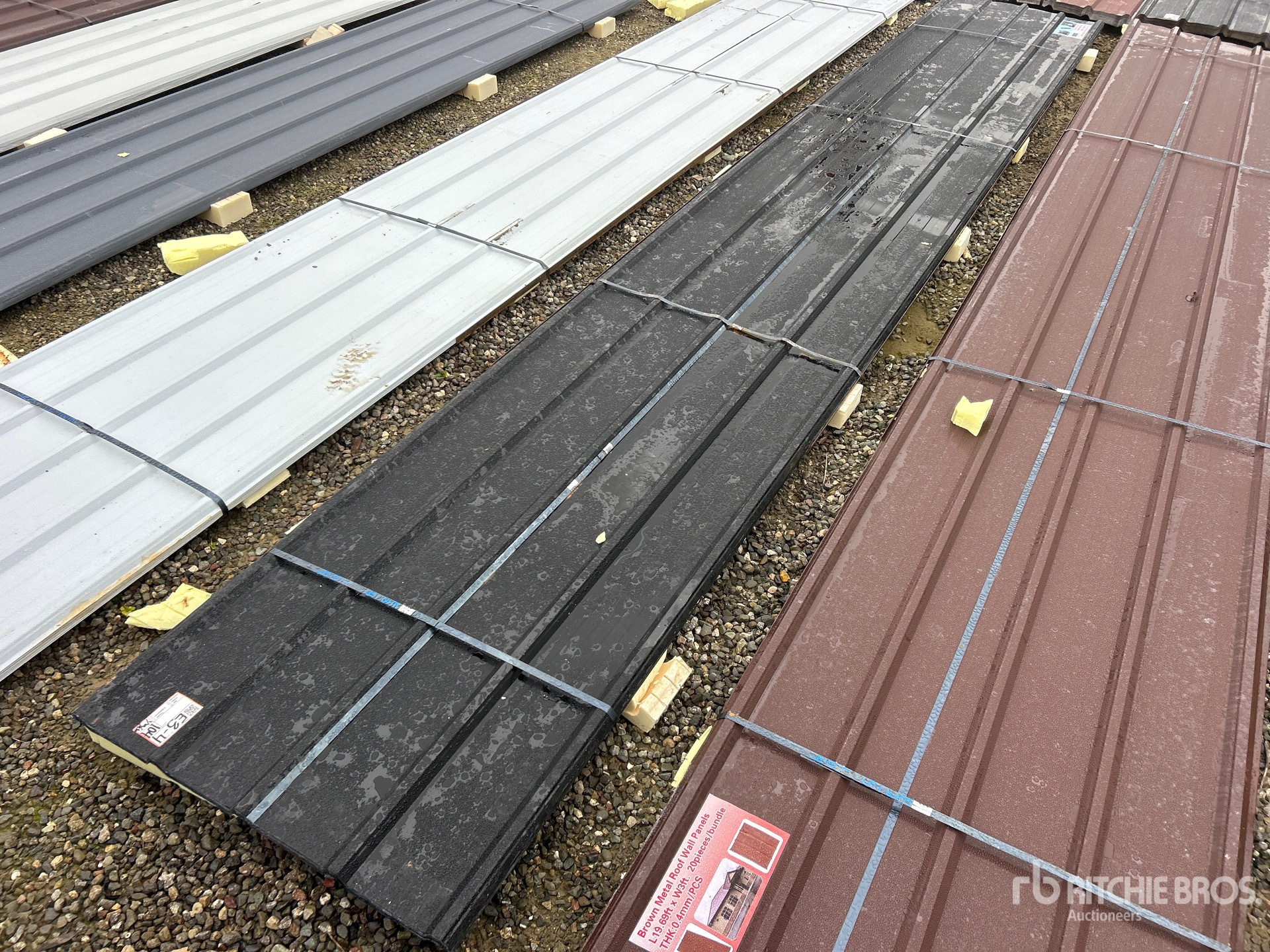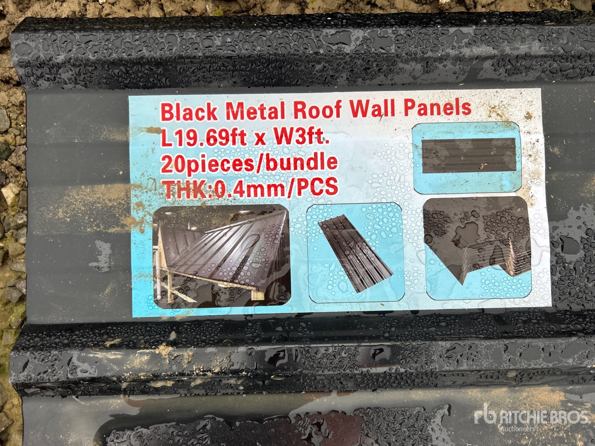 Quantity of (20) Black Metal Roof Panels 19.69 ft x 3 ft