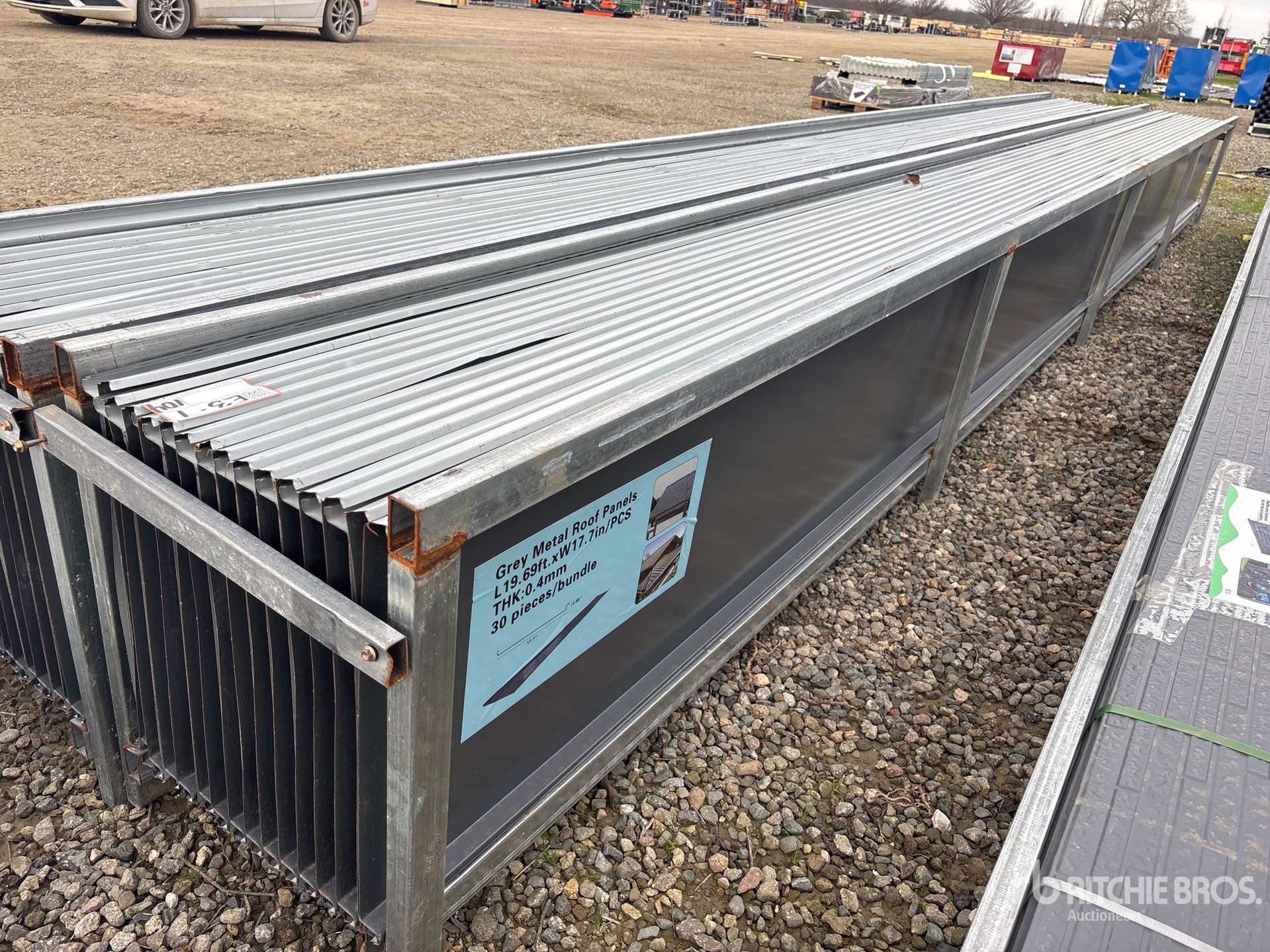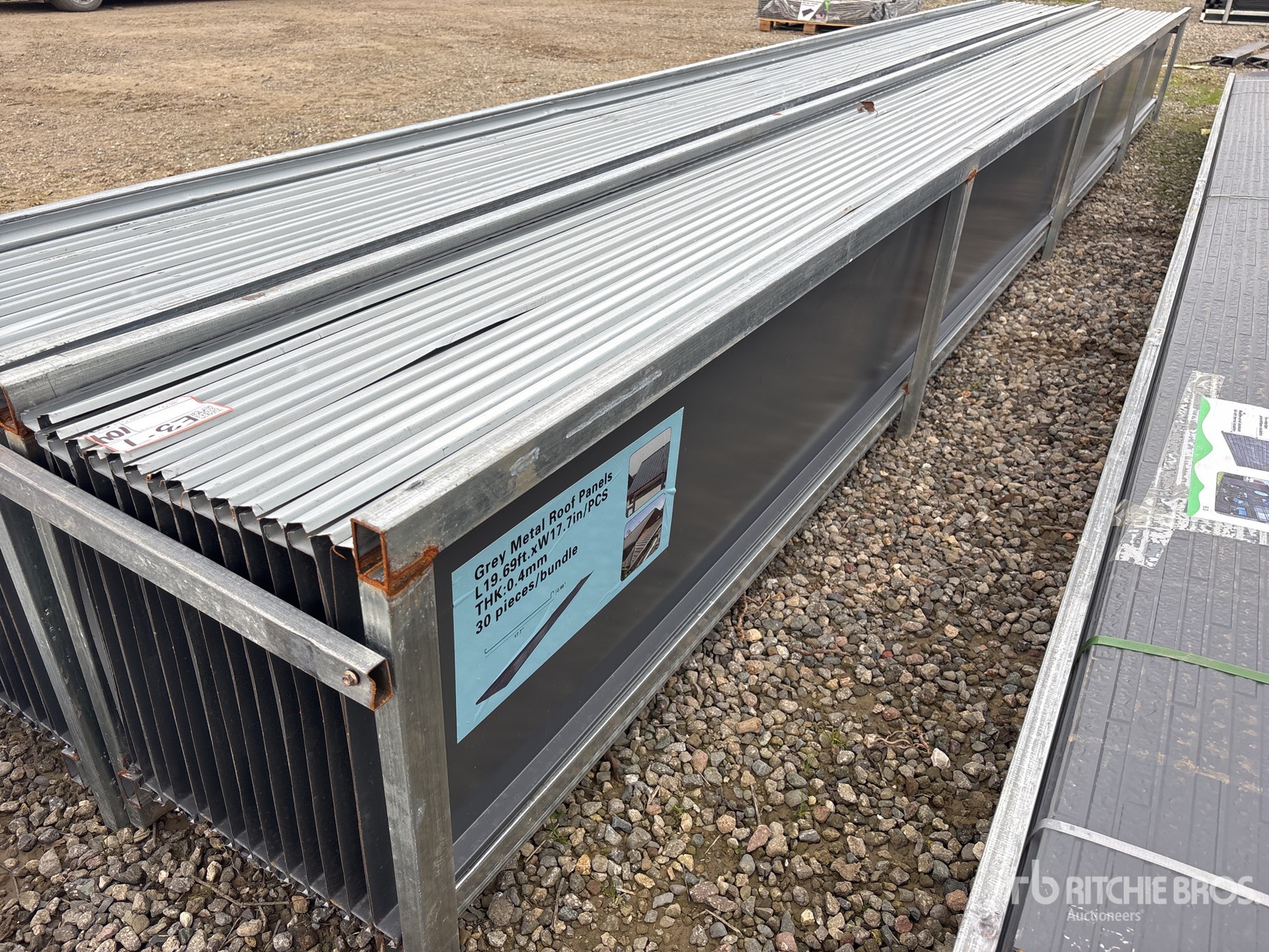 Quantity of (30) 20 ft x 17 in Grey Metal Roof Panels (Unused)