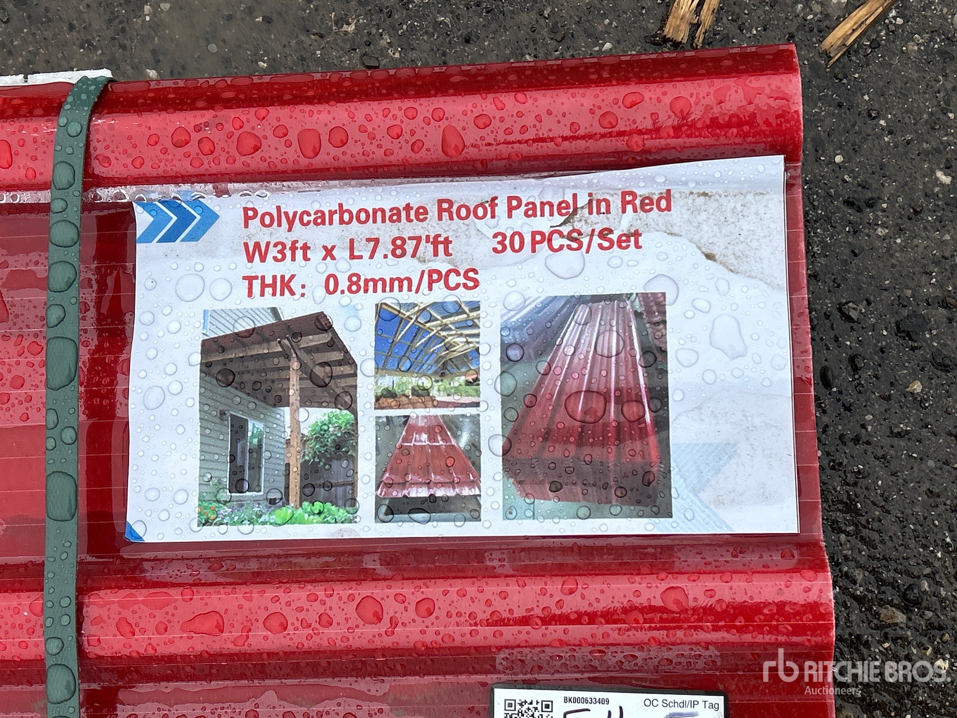 Quantity of (30) 7.87 ft x 3 ft Red Polycarbonate Roof Panel (Unused)