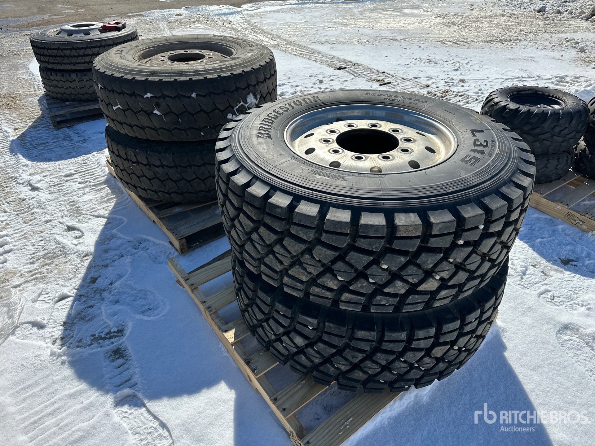 (2) Bridgestone L315, (2) Michelin XZY3, Aluminum Rims