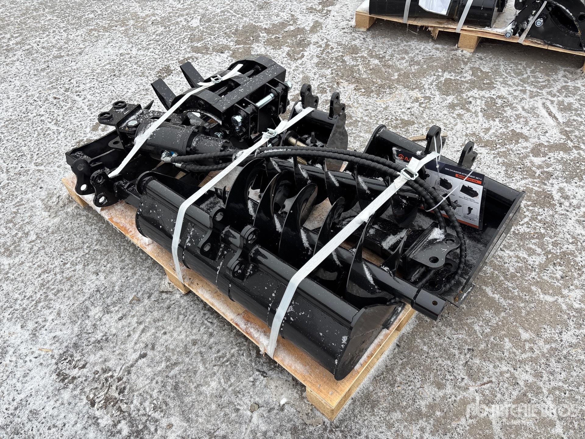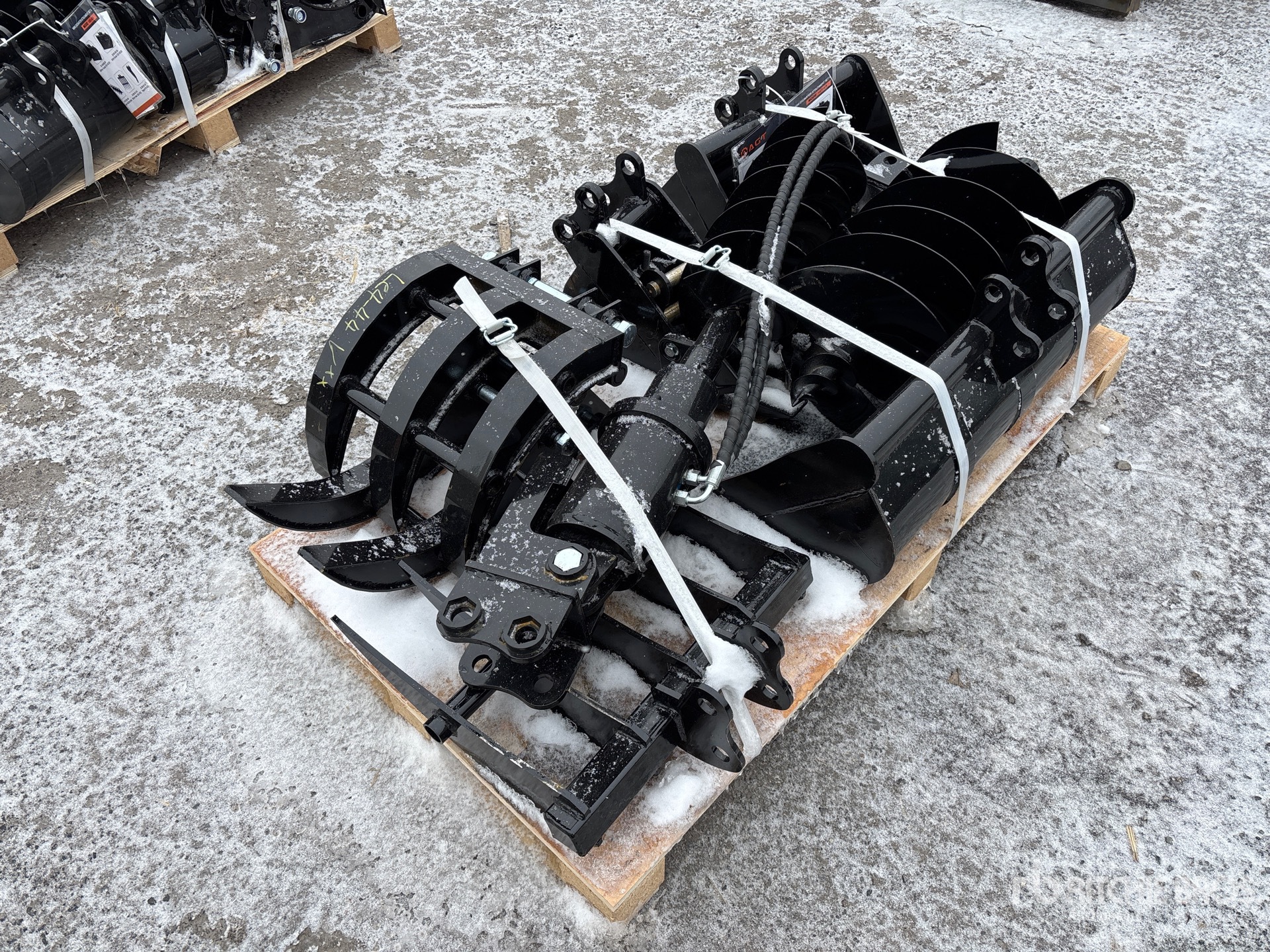 (1) 8 in Bucket, (1) 20 in Bucket, (1) 32 in Bucket, (1) Quick Coupler, (1) Ripper, (1) Grapple, (1) Rake, (1) 8 in Auger, (1) 12 in Auger,