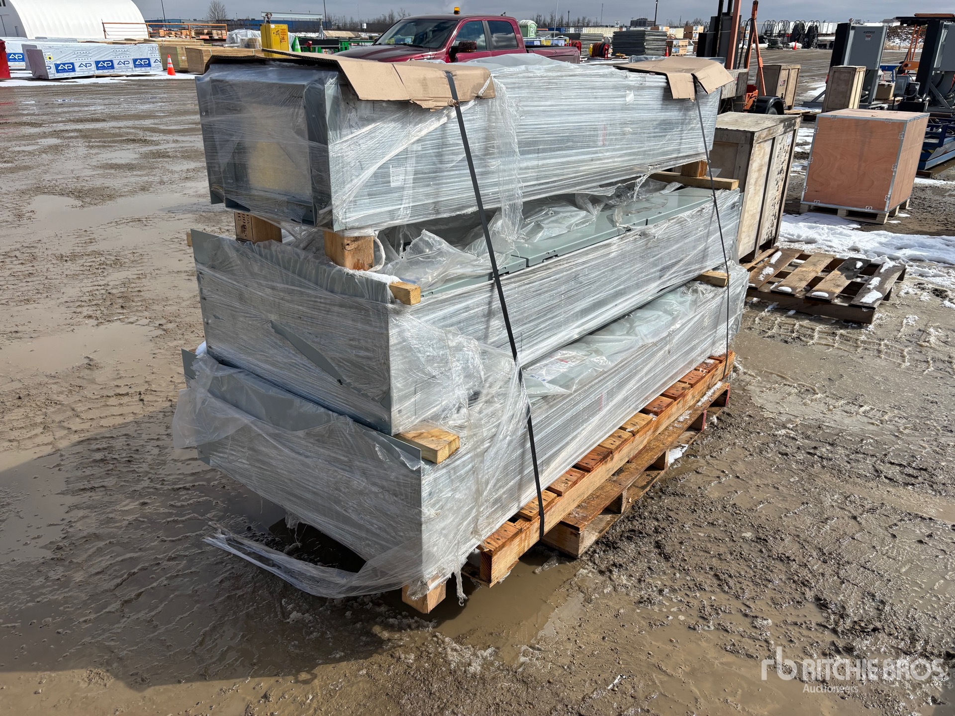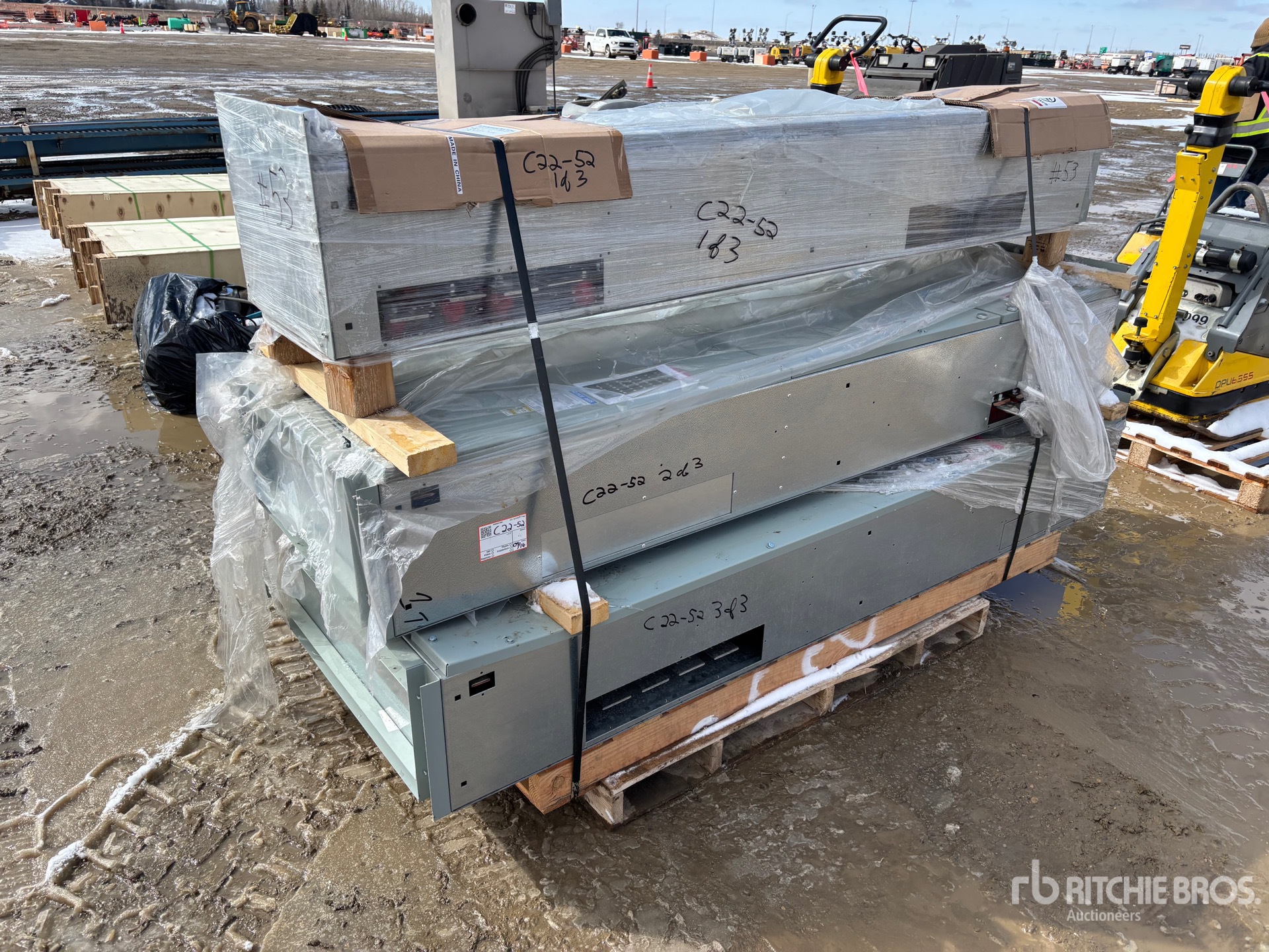 القياسات مُقدمة بشكل تقريبي فقط. قد تختلف الأبعاد الفعلية للحمولة بناءً على ارتفاع الشاحنة/المقطورة وتكوين/وضع الآلة المُحمَّلة. تقع على عاتق المشتري مسؤولية قياس جميع الأحمال قبل مغادرة موقع المزاد الخاص بنا لضمان أن الحمولة آمنة للنقل. يجب أن يتحقق المشتري من جميع القياسات. لا تعتمد على هذه القياسات لأغراض النقل.