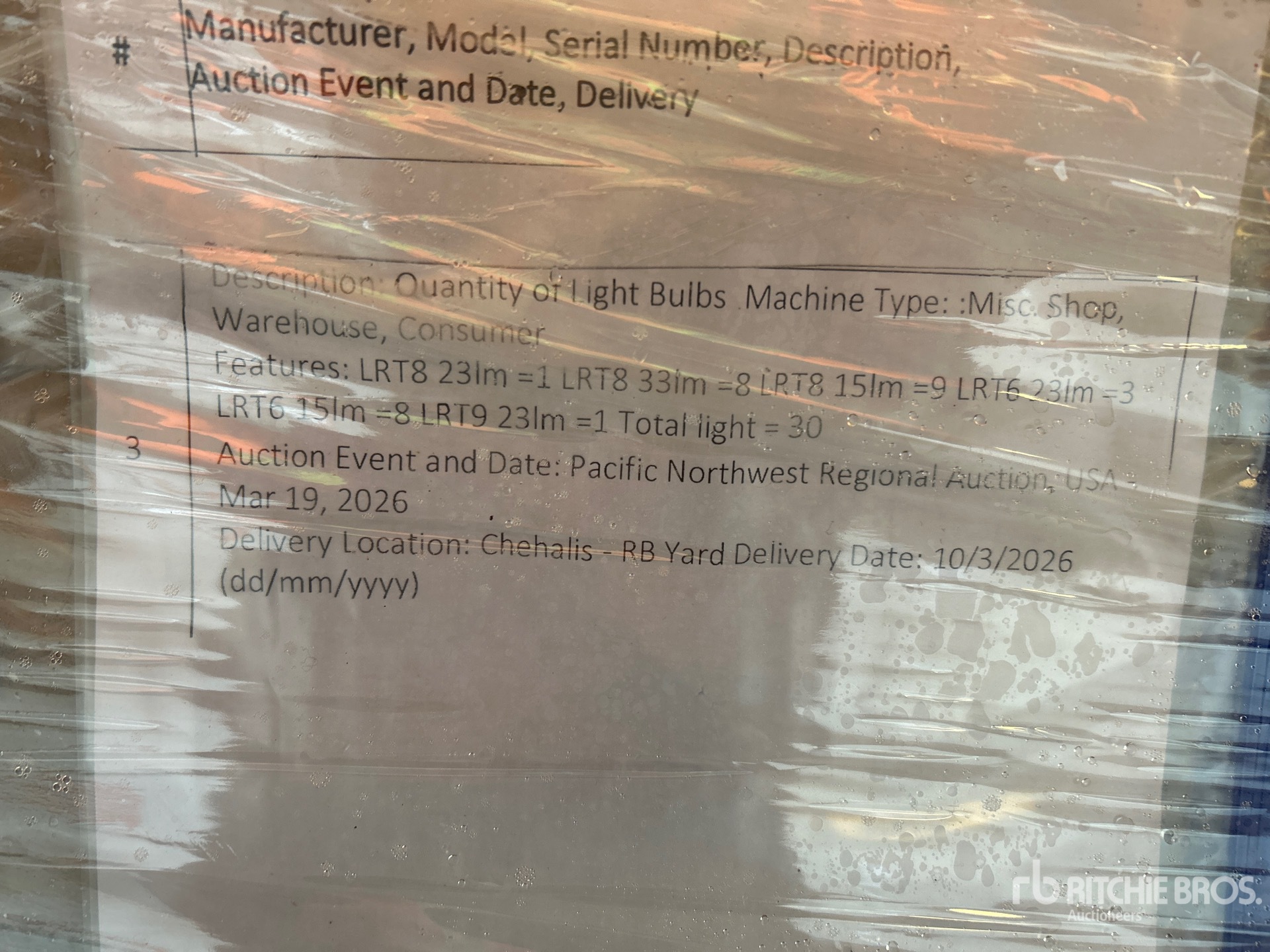 جمع أحد موظفي شركة ريتشي وإخوانه المؤهلون معلومات تفصيلية حول المعدات وأجرى اختبارات وظيفية للمكونات الرئيسية لهذه الأصول. يجوز لك أو لأحد الوكلاء أيضًا فحص أي عناصر في الموقع قبل تقديم المزايدات في يوم المزاد العلني.